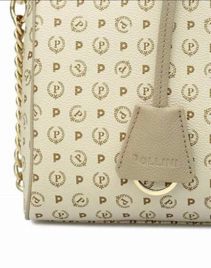 Borsa bauletto linea Heritage Logo Classic. Questa borsa può essere portata sia a mano, sia a spalla grazie alla tracolla amovibile. Dettagli in pelle ed elementi in metallo dorato lucido impreziosiscono il modello.