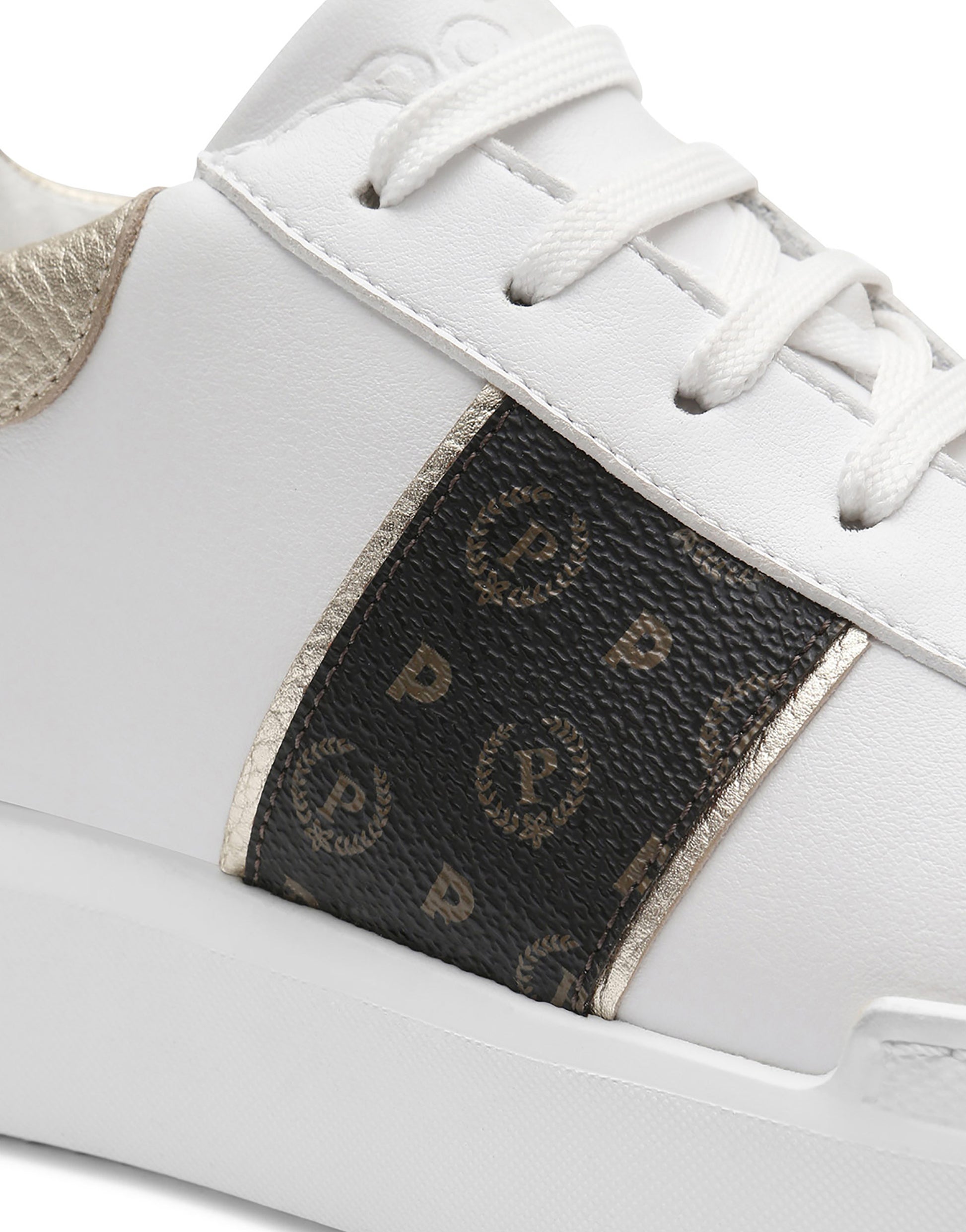 Iconica sneaker Carrie in versione Heritage. Elemento decorativo sulla tomaia con pattern all over. Dettaglio in vitello a contrasto sul tallone con borchia logata. Fondo in gomma dal volume importante.